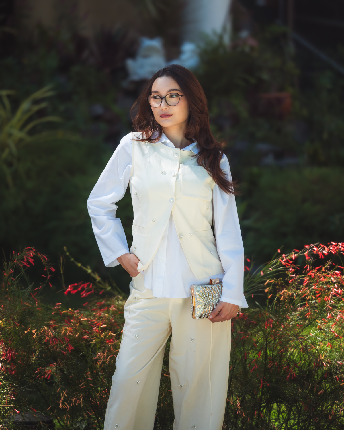 Ensemble élégant composé d'un gilet, d'un pantalon. La chemise est vendue seule
